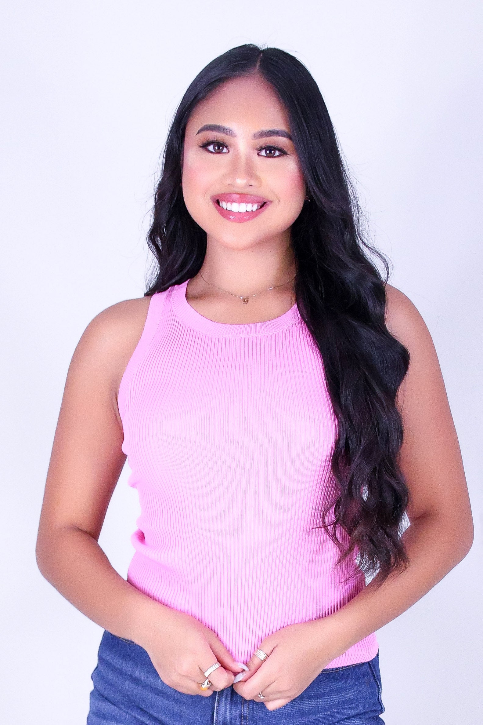 SNUGGLE SWEETIE SWEATER TANK is available in color PINK and in size SMALL, MED, LARGE.