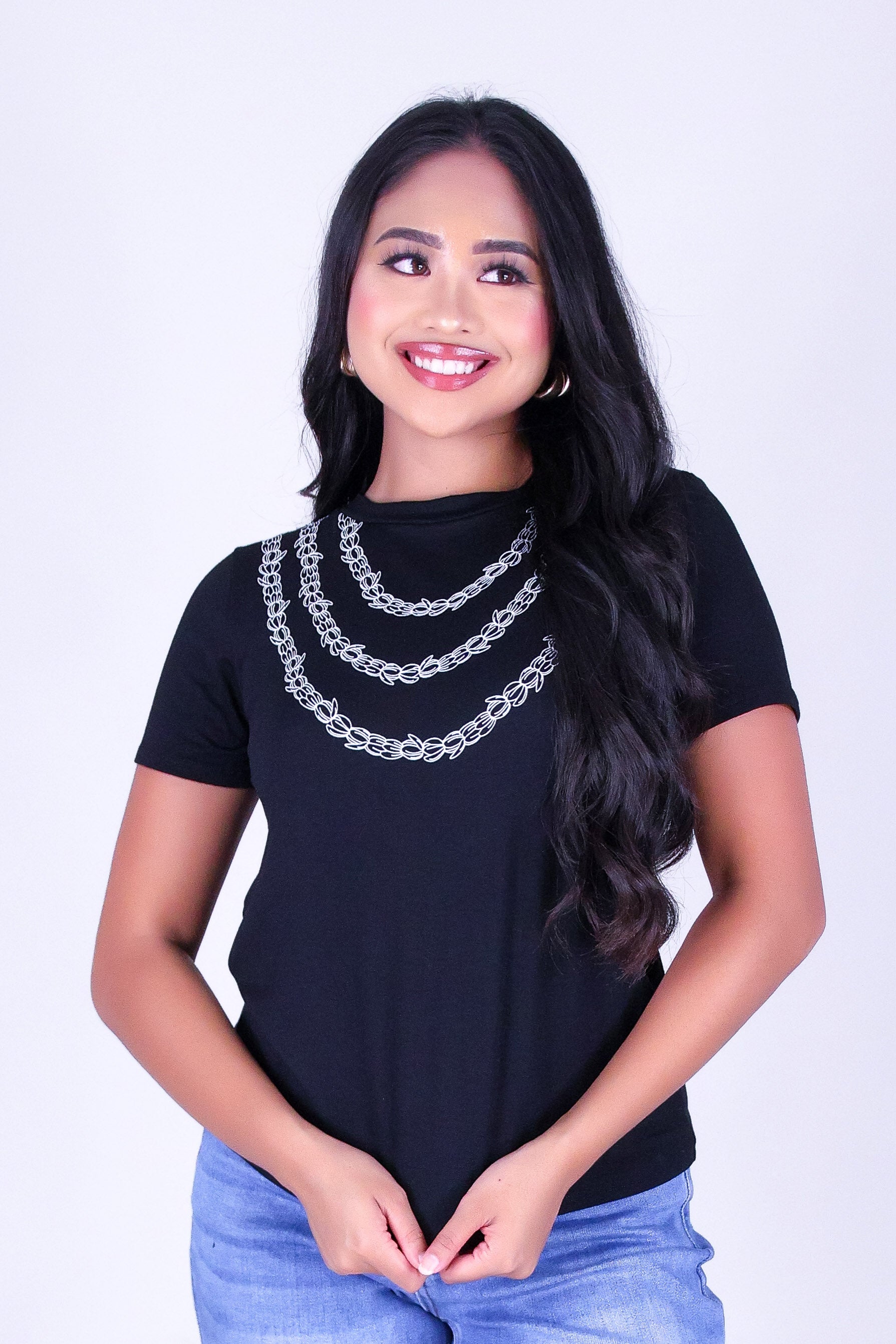 3 STRAND OUTLINE PIKAKE TEE is available in color BLACK and in size SMALL, MED, LARGE, XL.