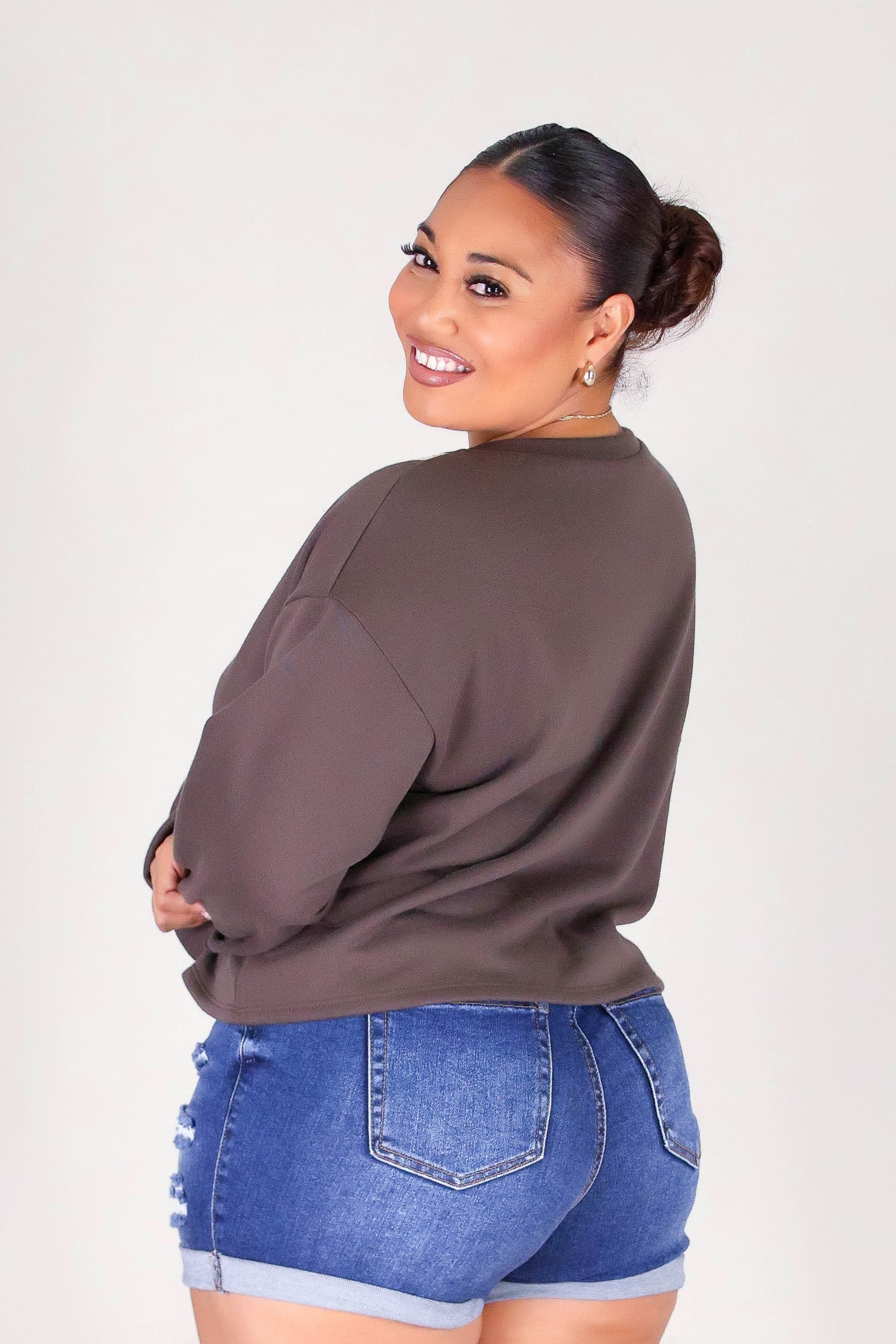 LAYERED PUAKENIKENI ALOHA SWEATER is available in color BROWN and in size 1X, 2X, 3X.