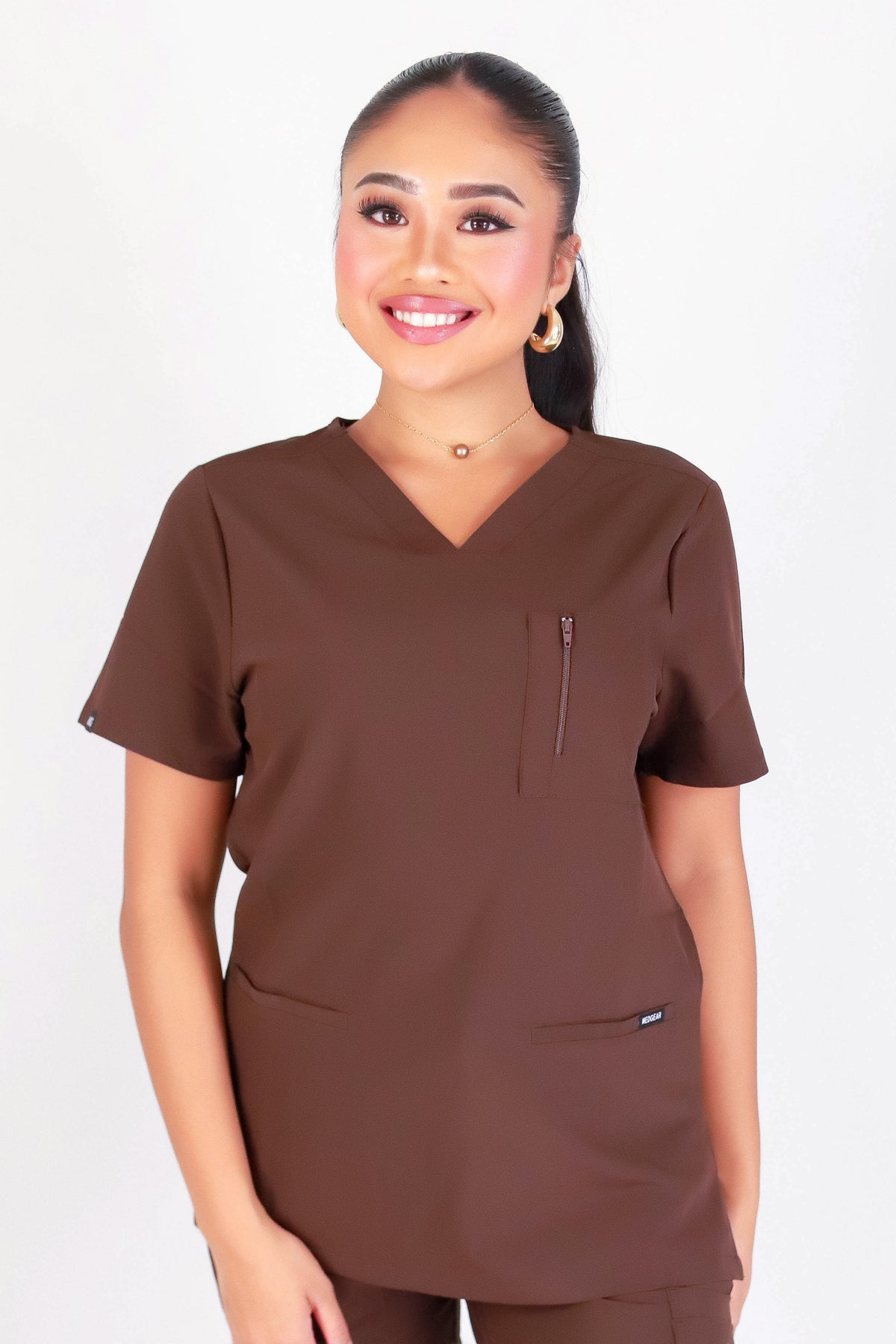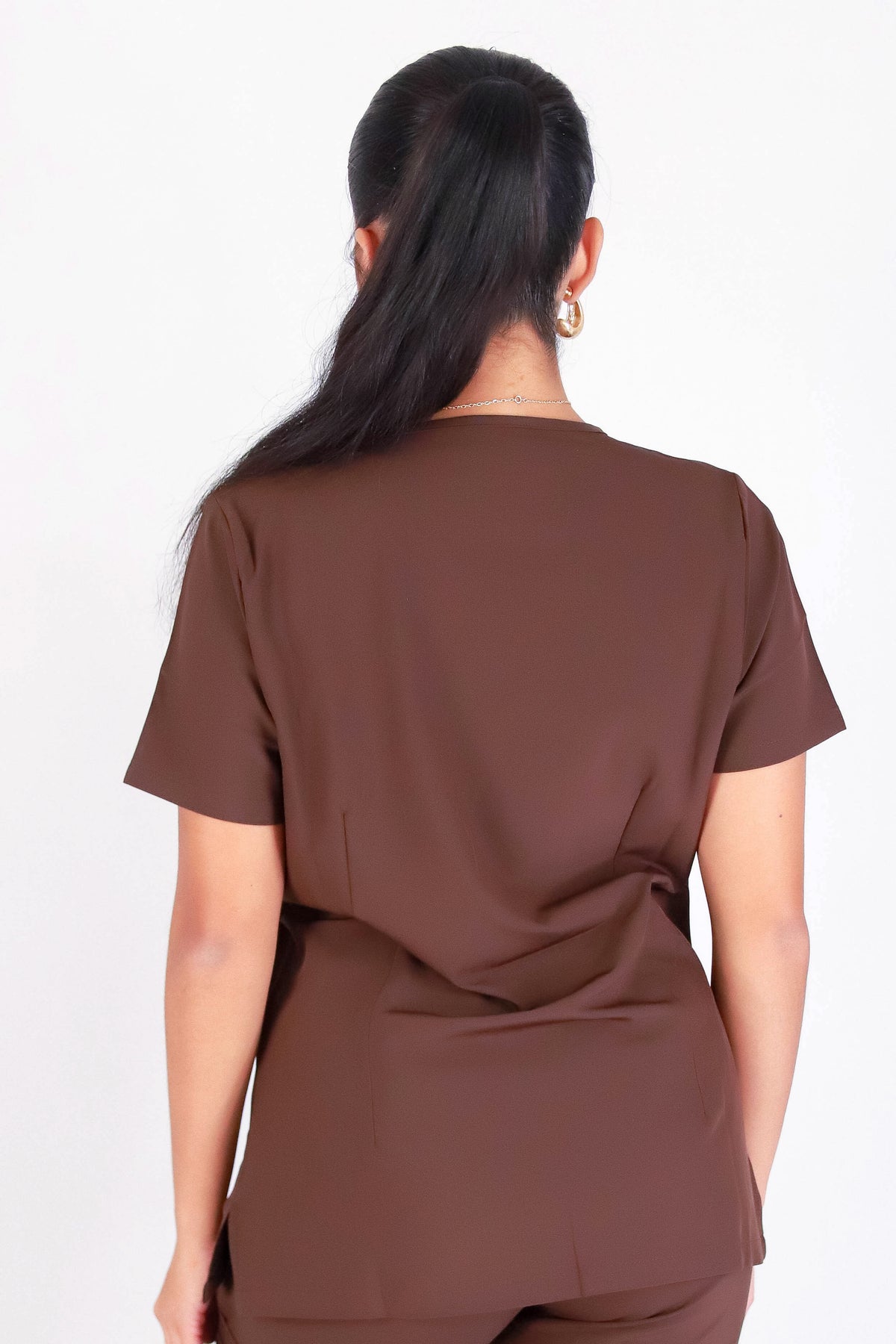 BE PATIENT WITH ME SCRUB TOP is available in color DARK BROWN and in size XS, SMALL, MED, LARGE, XL.