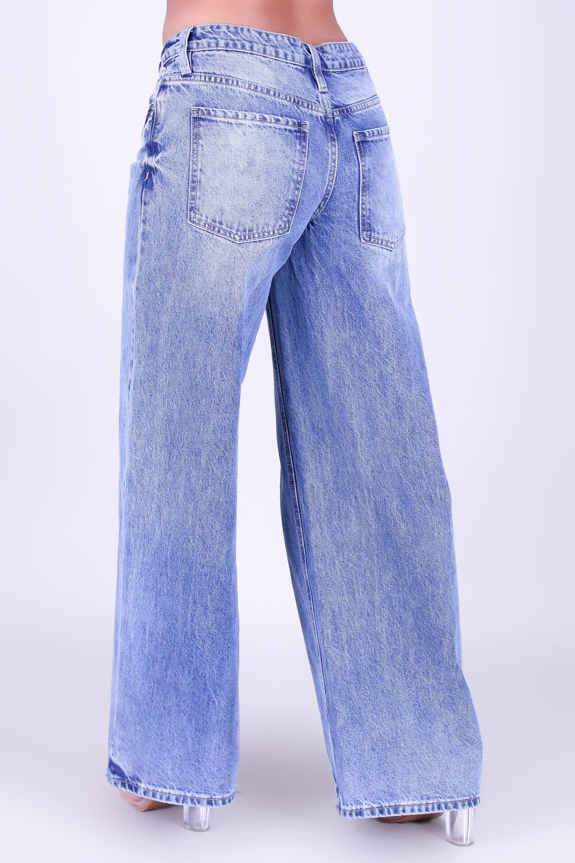 LET IT FLOW WIDE LEG JEANS is available in color MED S/W and in size 1, 3, 5, 7, 9, 11, 13.