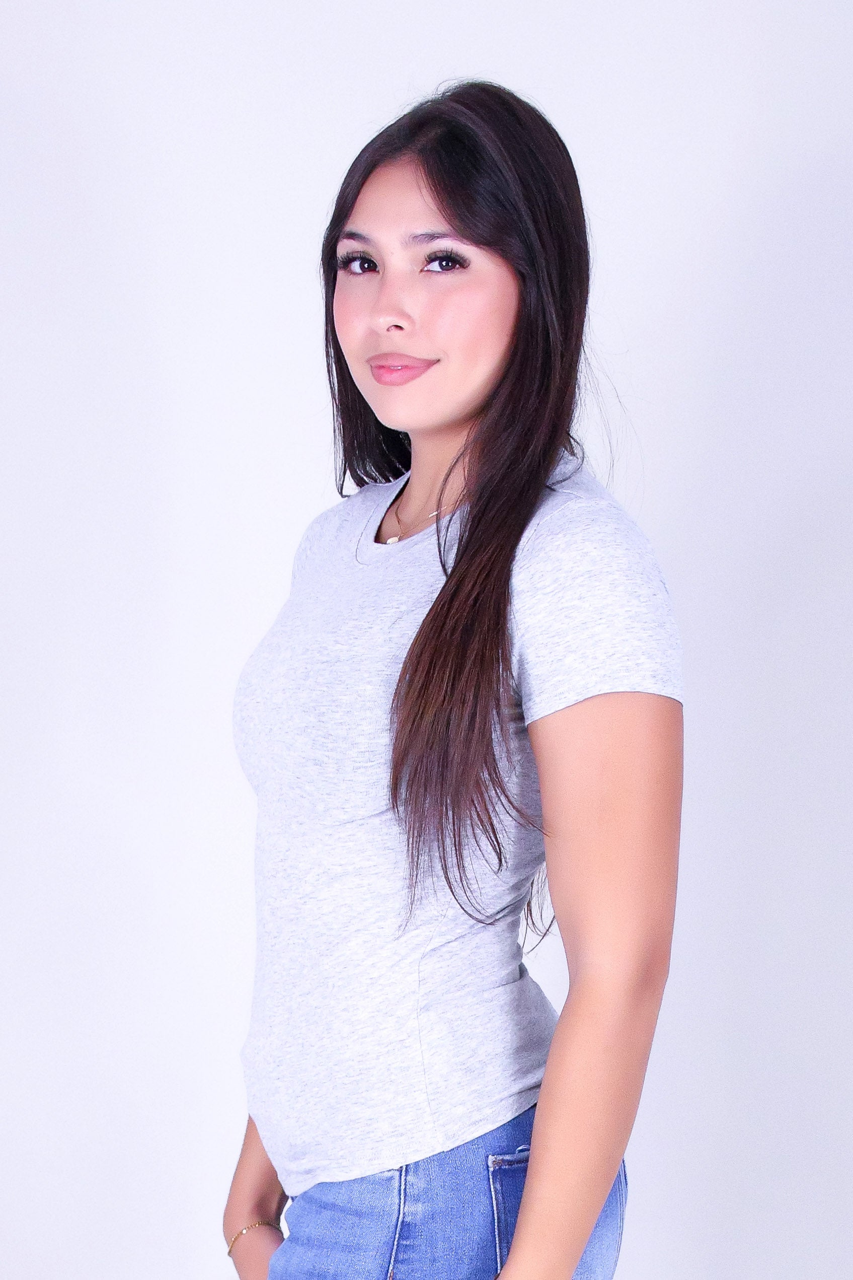 DARLING BABY TEE is available in color H.GREY and in size SMALL, MED, LARGE.